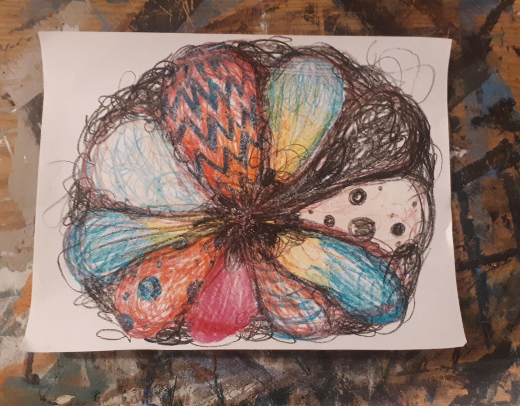 Over the years, I found myself having deeply intimate conversations with people. I would offer insights about things I had no logical way of knowing. Early on, I discovered something whilst I allowed myself to gently dissociate and just scribble. While I drew, messages would come through the way they would while I drew tarot cards. These images often held information that I would then confirm to be true.