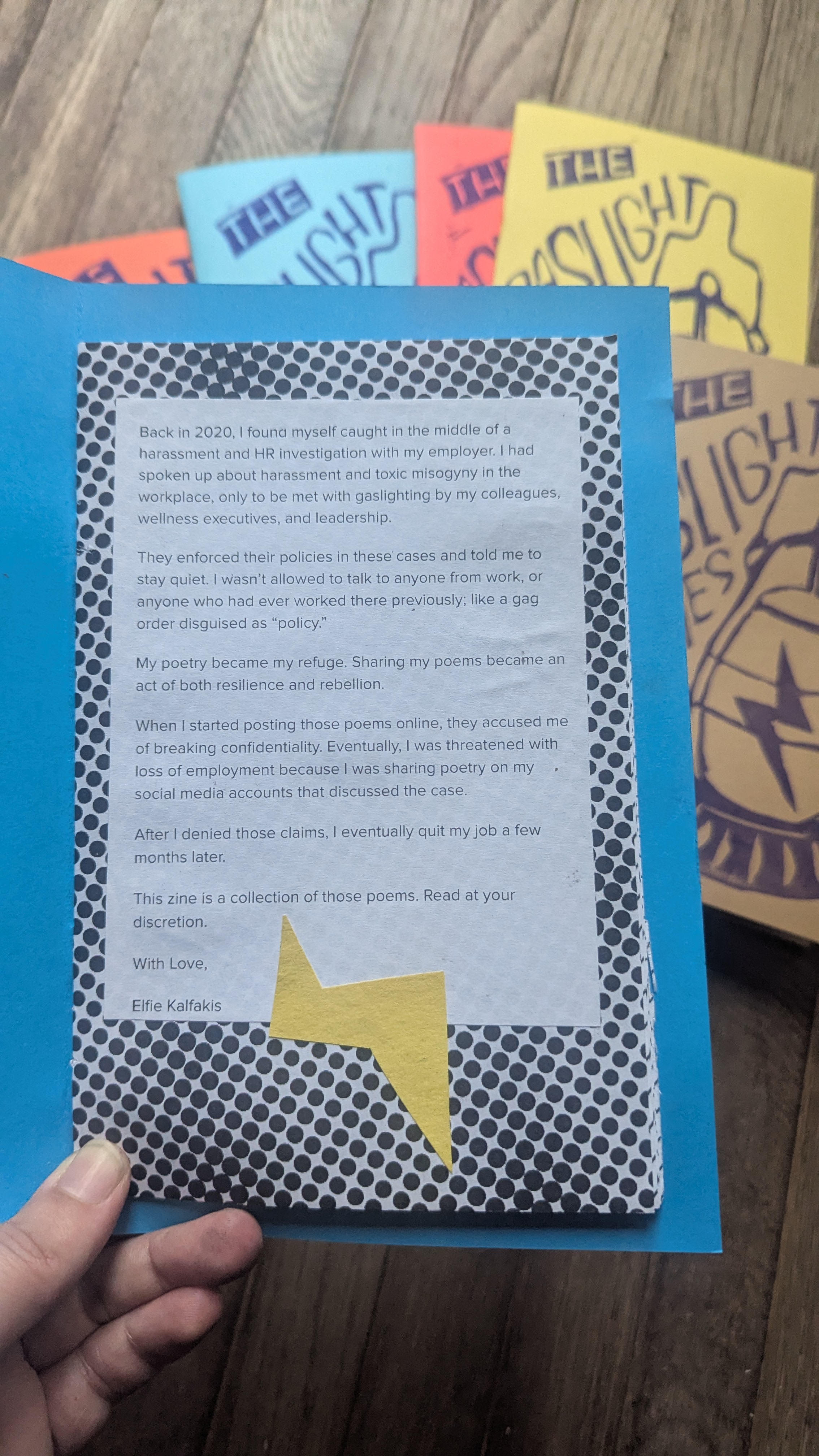 A 20-page poetry zine born from truth-telling and resilience. Each copy features a hand-printed cover and a personalized collage. These poems were written during a time of silence and upheaval. They trace a time when I spoke out, reclaimed voice, and found refuge in art.
